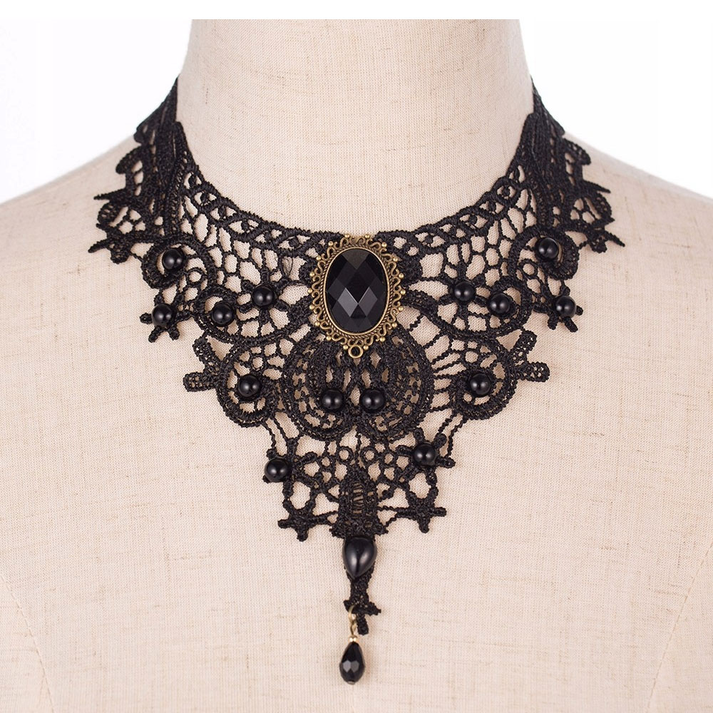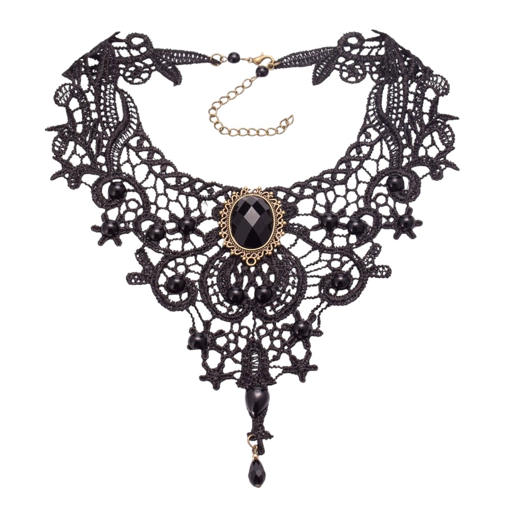 Koronkowy naszyjnik w stylu gotyckim. Z regulowanym łańcuszkiem.